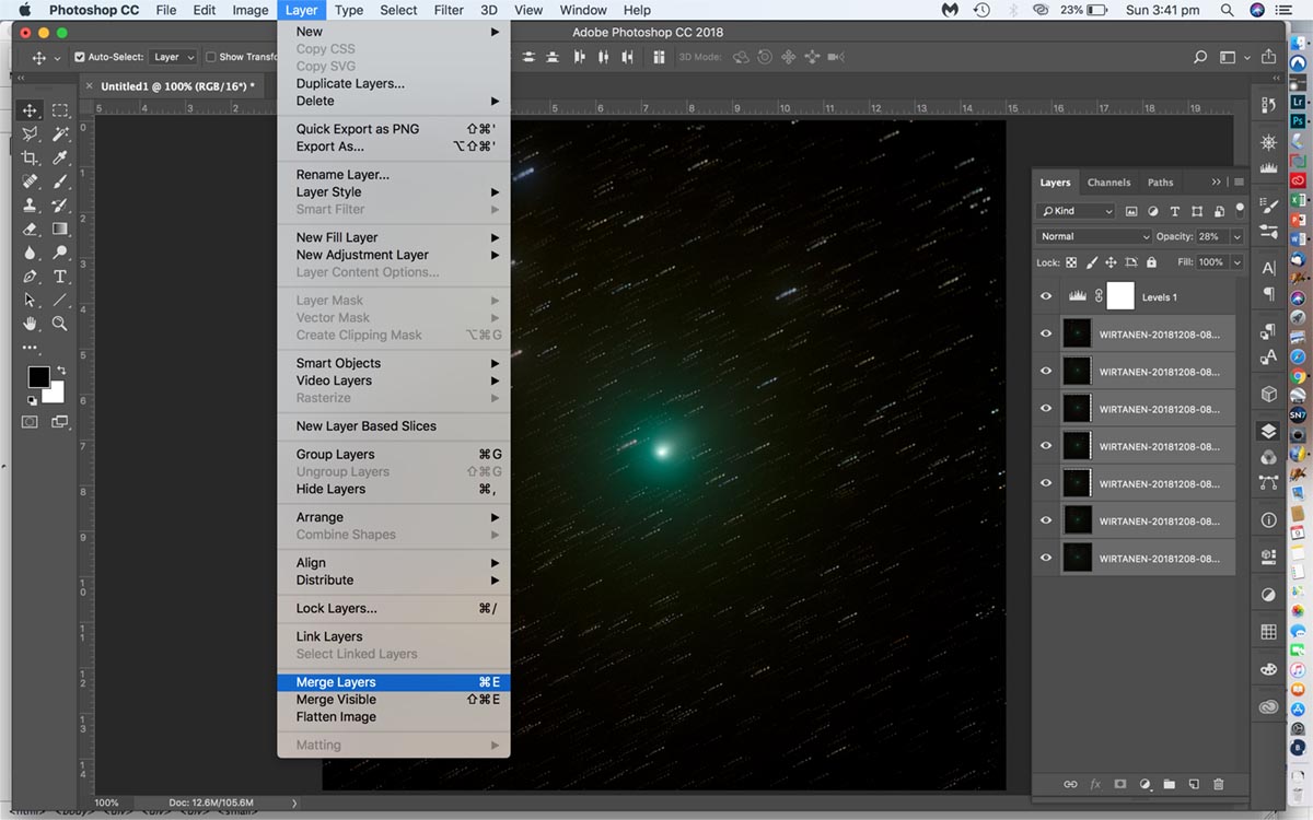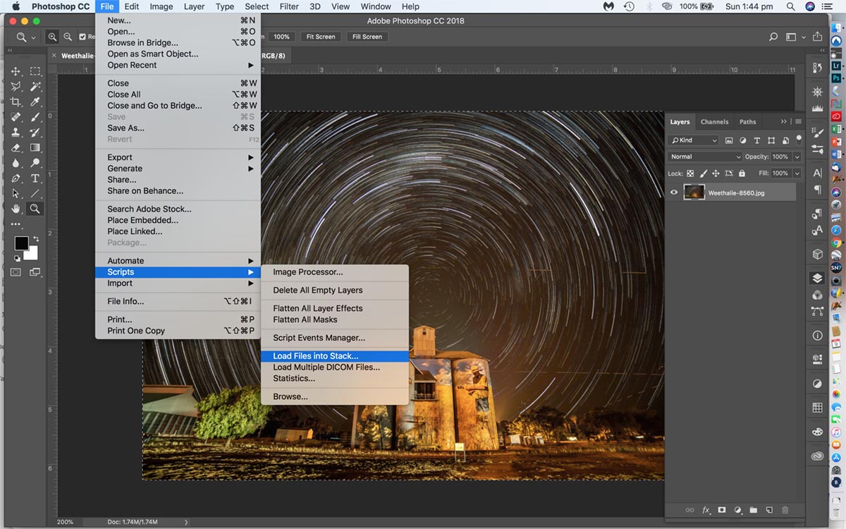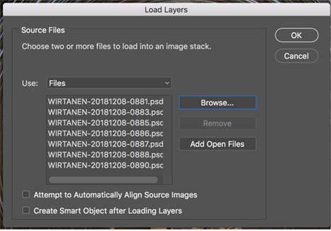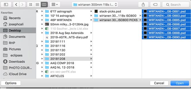 3. Find the images and highlight(select) the batch. I prefer to lightly batch process my raws in Lightroom, then export them as 16 bit photoshop files before importing to Photoshop. But you can stack raw files in exactly the same manner. |