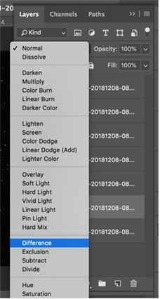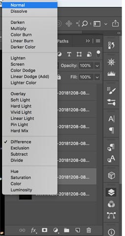 7. Set the layer blending mode to 'DIFFERENCE' mode. This will subtract the difference layer from what image detail lays underneath. |