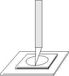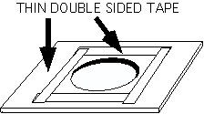 Tape a soft tissue to a flat surface. Place a piece of the Baader Astrofilm or other thin film filter on the tissue. With the double sided tape facing down, press it firmly against the Baader film using the pen marks to position the hole centrally over the film. ![]()