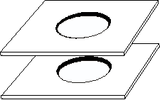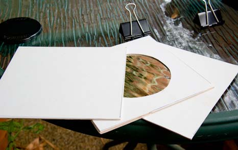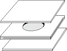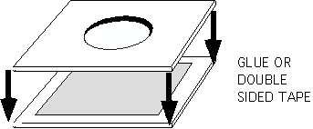 Making the lens hood flange 2. Glue the two small pieces together firmly to one large piece using the PVA wood glue. Keep the pieces centred and the glue layer thin but continuous so that when you cut the holes, the layers don't come apart. Clamp well and give plenty of time for the glue to dry. ![]() ![]()