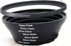 Using the Cokin ring in the above filter holder plus the nest, you can step down to any camera lens size between 49 and 82mm