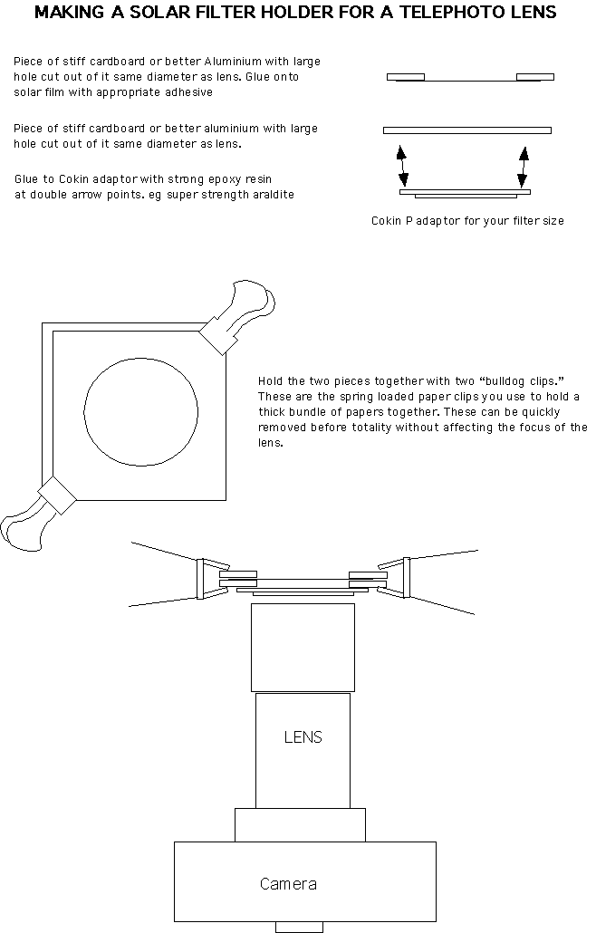 There are endless variations on ways of making or mounting a solar filter. The mounting method has to suit the application and the type of filter material.