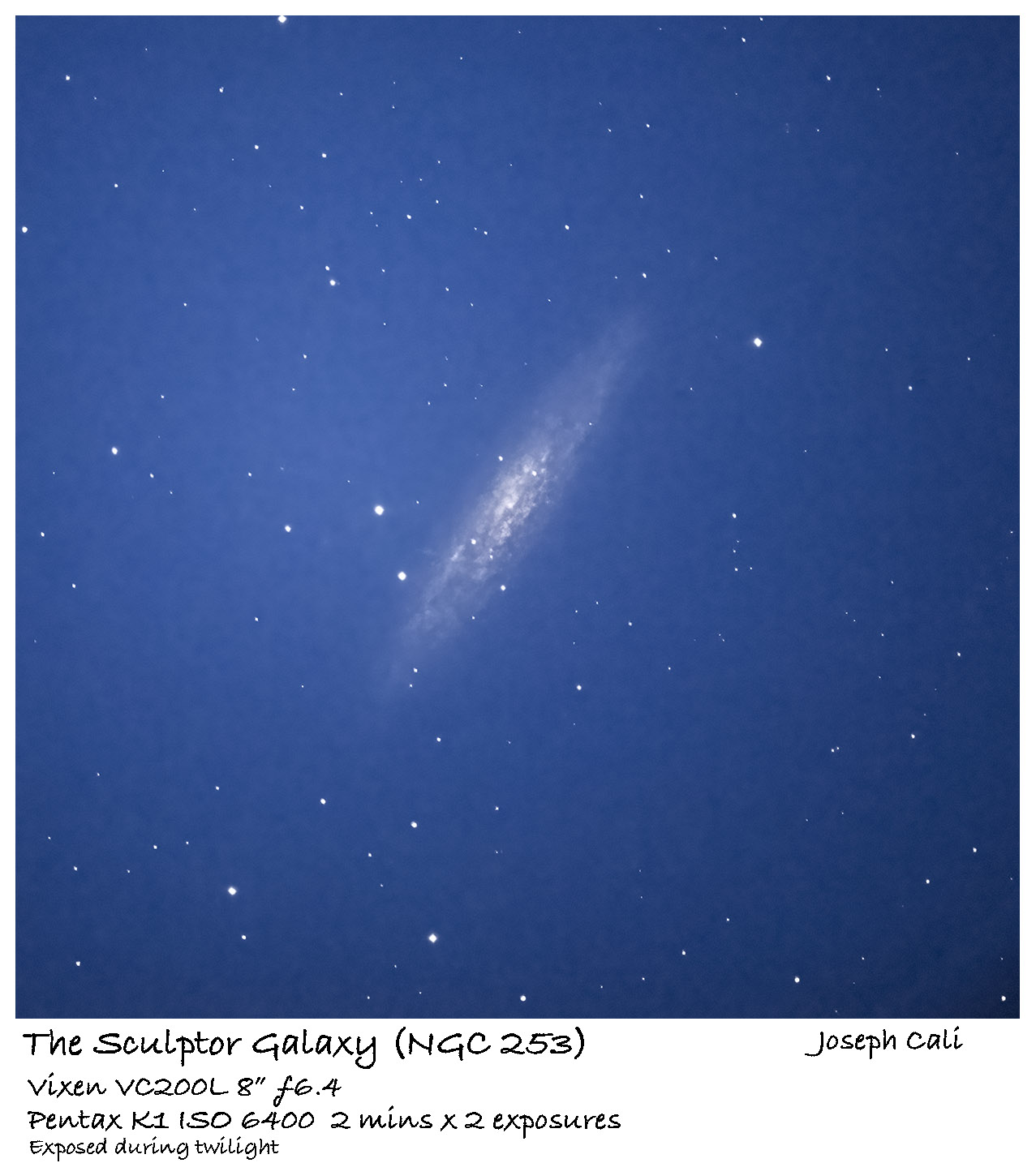 telescope capturing images of NGC 253 after dawn (astronomical twilight).  So I processed