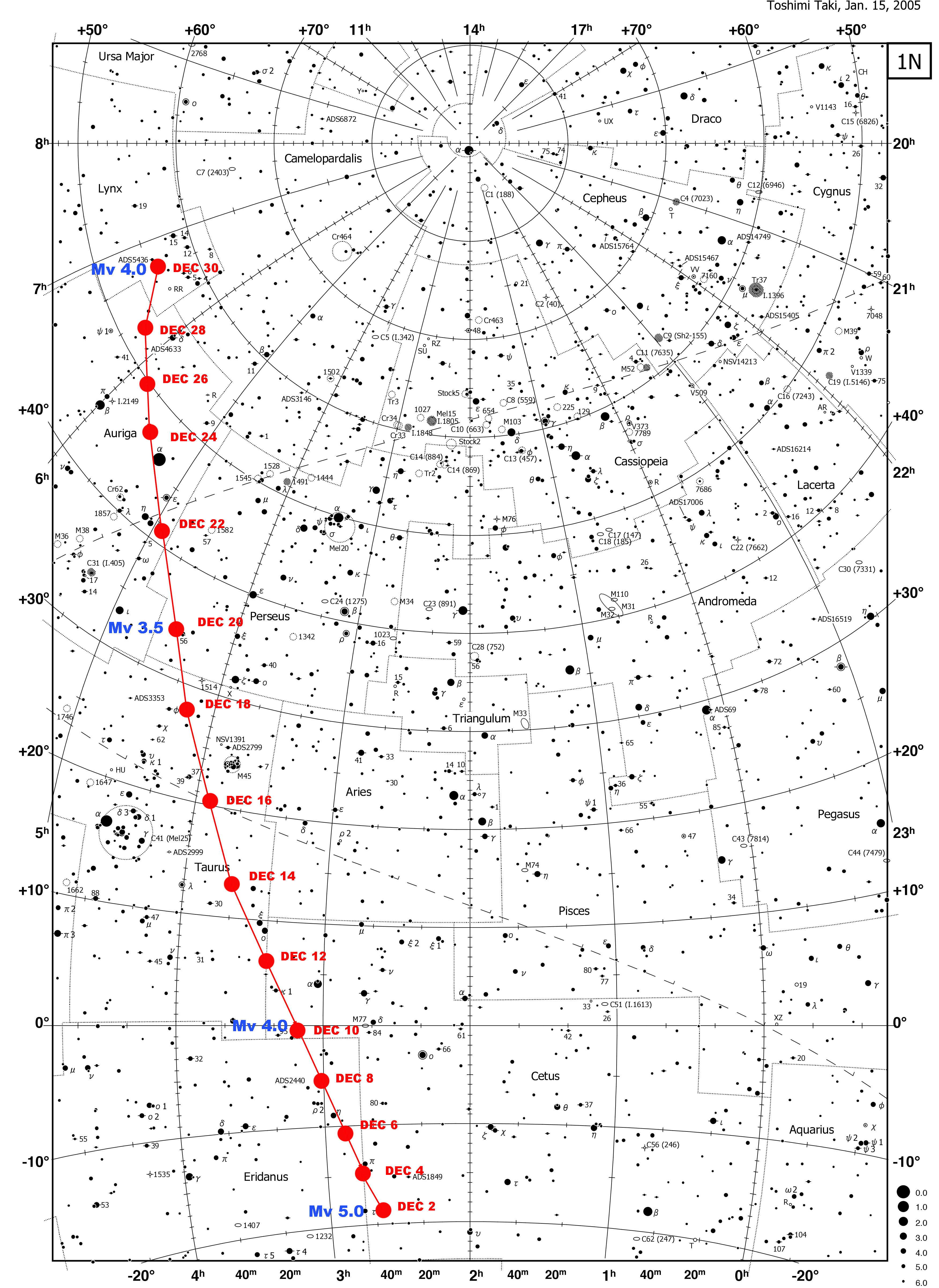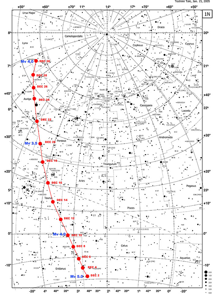 Path of comet 46P Wirtanen - December 2nd - December 24th Click on the map to link to a higher resolution image suitable for printing. |