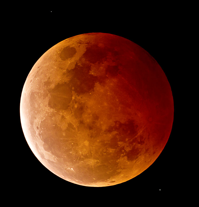 In the lead up to this eclipse, the media coined the term "blood moon." With their limited understanding of all things scientific, the media always need to over-reach and then over-use some silly buzz word to add interest to their story. One example is the "supermoon" phenomena Every year, one full Moon coincides with the time each month when the Moon is at closest approach, they use the term "super moon"because they can't spell perigee. This was the case with the term "Blood Moon." The term comes from a book by two clerics which details a fanciful and ridiculaous construct connecting the occurrence of four lunar eclipses in a row, with the coming of the anti-christ.
