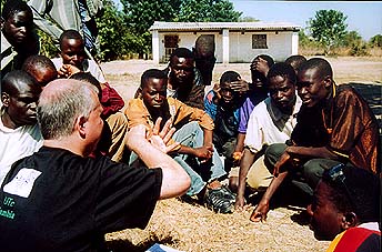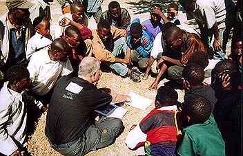A group of 8 Polish observers drove in and set up on the soccer pitch. I asked the teachers if they had permission from the school or village headmen to do this. They had not. We had intended to get all the villagers to spill onto the pitch just before totality. Since this group of observers and its South African tour organiser hadn't had the manners to seek permission to use the area, I had no hesitation in continuing with our plans to use the oval during totality. I also didn't see any reason to tell them of our plans. There's a bit of Mr Bean in all of us!