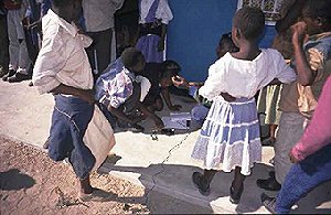 We arrived at Kapini at about 9.00am. The deputy head teacher Mrs J.B. Hateya and the senior teacher Mrs C.S. Sobingi greeted us as we arrived. We began to set up. After a short time, the school principal, Mr Bernard Chiwala arrived. All seemed pleased to see us.