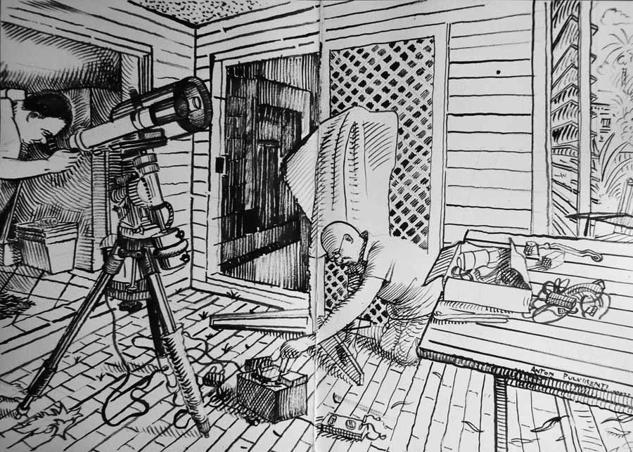 Meanwhile, Anton sat back sketching us and produced this fantastic brush and ink drawing.