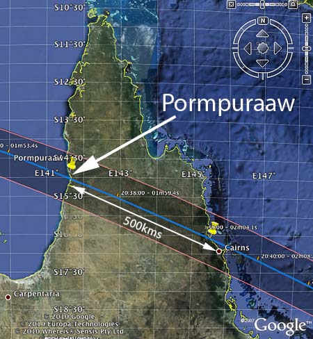 Above: Flight path of Q6 2087 from Cairns to Pormpuraaw(left)