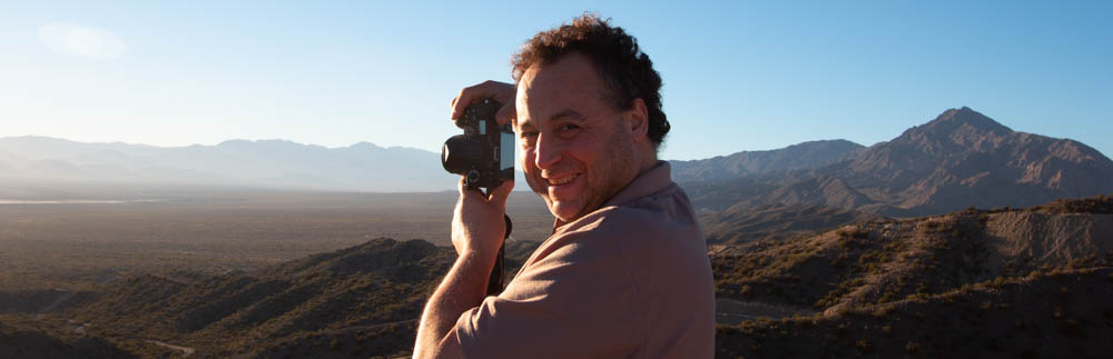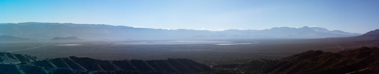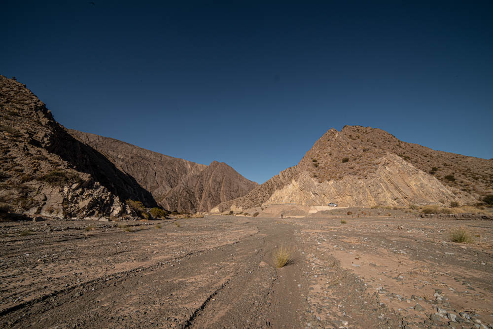 (below right) Behind us are mountains and places where we can get right out of the wind. The ground is very firm so we can drive the car right onto the dry river bed.
