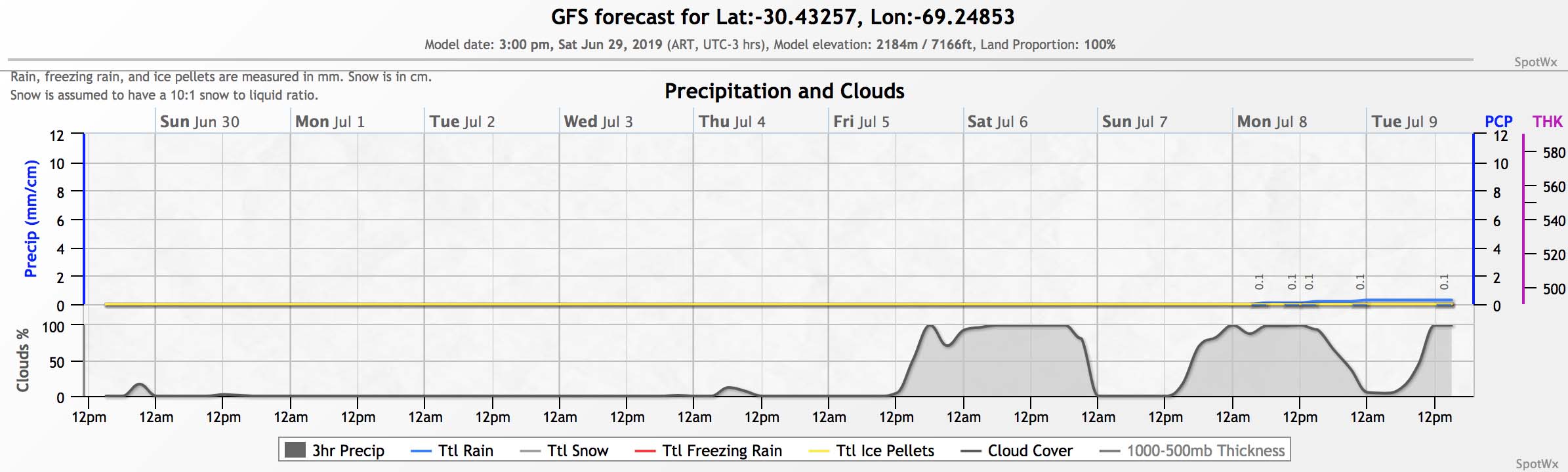 Our prime site is the lookout, "Mirrador Sierra de la Crucecita." Over the last two visits, we've discovered that the wind up there can be ferrocious so we have found a couple of sheltered sites that have good western horizons but where we are in a wind shadow.