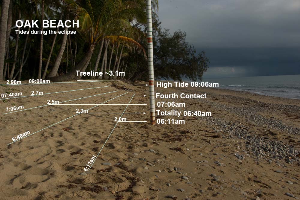 Weather Prospects November isn't the sunniest month of the year but nor is it the cloudiest. It is in the build up but definitely before the start of the monsoon. Humidity causes cloud build up during the days. Afternoon and evening showers and thunderstorms are common. Fortunately mornings are typically fine and sunny along the coast but with some scattered cloud off the coast almost every morning. The rising moist air causes clouds to form along the tops of the coastal mountain range so it's probably wise to stay clear of places like Mt Molloy, Mareeba, Atherton and Kuranda. No cyclone has ever occurred in November in North Queensland in the time since records have been kept. Weather Information 1. The Australian Bureau of Meteorology http://www.bom.gov.au is a primary source of general weather information. 2. Jay Anderson is a Canadian Meteorologist who specializes in eclipse weather. His site is http://www.eclipser.ca He has a whole section about weather prospects for this November's eclipse Eye Safety The total part of the eclipse lasts for about 2mins in the middle of the two hours. During this time, the photosphere, the bright surface of the Sun, is completely covered by the Moon so totality can be safely observed without using eye protection. The total eclipse is only as bright as a full Moon and regardless of what you might read, there are no dangerous rays that will damage your eyes during this period. The two phenomena known as diamond rings mark the start and end of the safe period and it's only during the between the two diamond rings that it is safe to look without eye protection. ![]() ![]() The Sun goes through an hour of partial eclipse before and an hour after the total eclipse. During both periods, there is great danger of eye damage occurring.