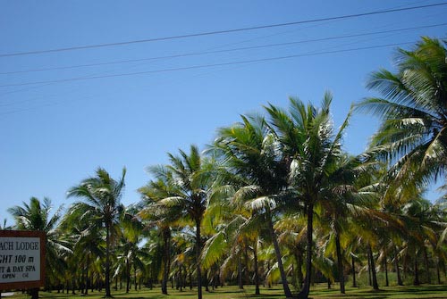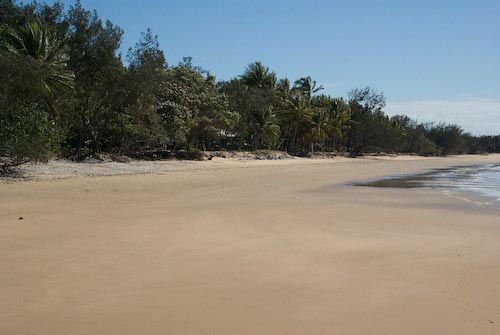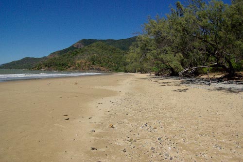 Between Oaks beach & Port Douglas, more open ground is available. At Port Douglas, Four Mile beach faces east. The high tide comes well up the beach and palm & other trees obscure the western horizon.