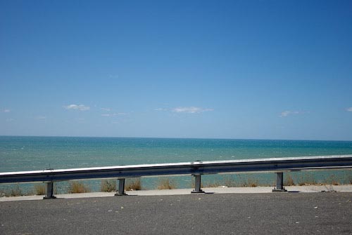 tide mark well up the beach. The highway at this point turns inland