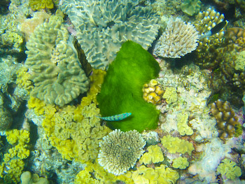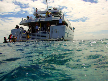 On the trip we took, safety precautions were impressive. Clients in the water were constantly supervised by at least two staff keeping watch on deck. A rescue boat was always in the water on standby. After returning to the boat, three staff independently undertook a head count. If the three tallies didn't match, they recounted to make sure they hadn't left anyone behind. |