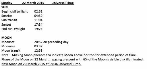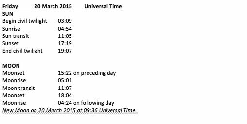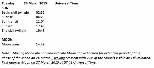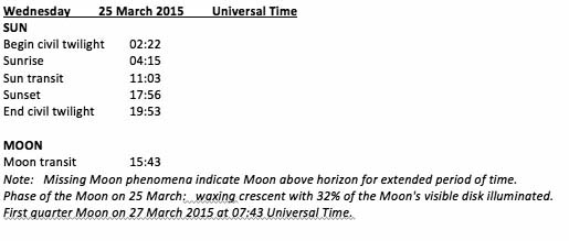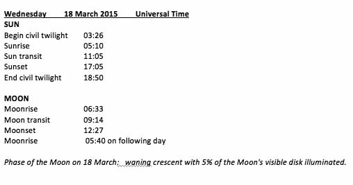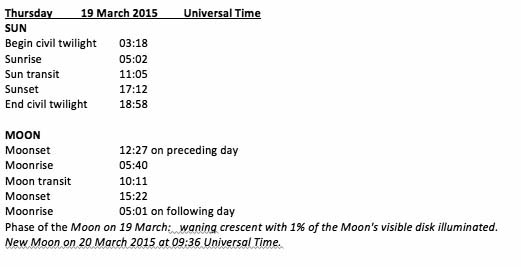 ![]() ![]() ![]() ![]() Source: http://aa.usno.navy.mil/data/docs/RS_OneDay.php Civil twilight is defined as occurring when the Sun is 12o or more but less than 18o below the ideal horizon. In Canberra’s mid-latitudes, this presents as a patch of brighter cyan coloured sky being visible in the suns direction while the opposite side of the sky goes a darker blue but not black. In clear arctic skies, skies can be darker for a given solar altitude than polluted mid-latitudes. |