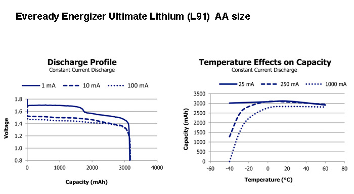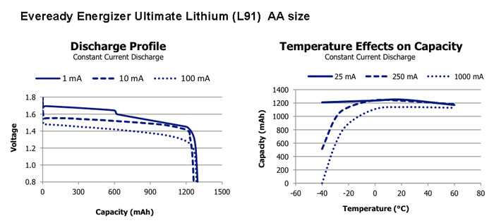 jacket until ready for use thus minimizing temperature drops. ![]() The Discharge profile and Temperature effect on capacity diagrams are shown below for AA and AAA sizes. ![]() ![]() |