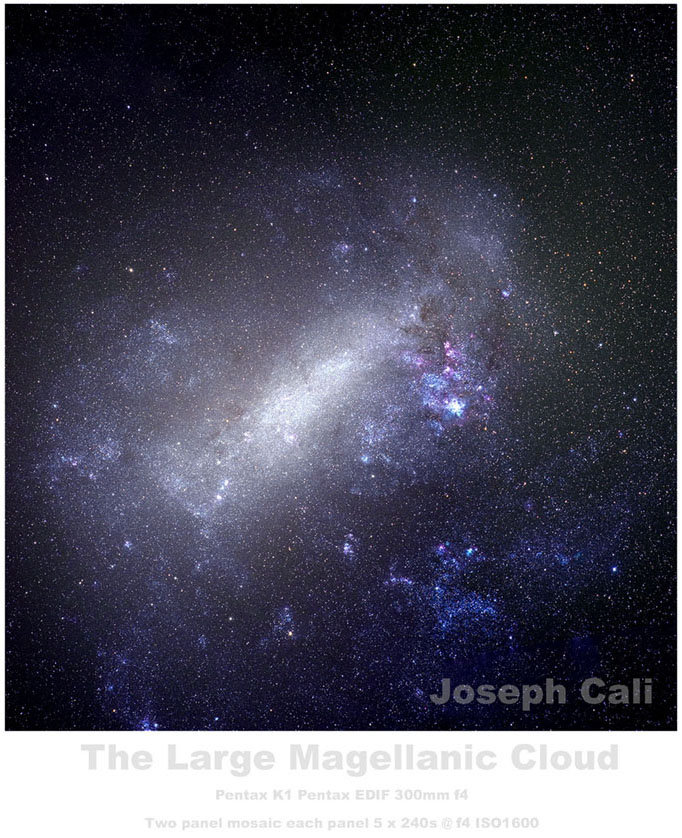 Spend the reconciliation day long weekend shooting and enjoying the stunning dark skies at “34 South,” located 160km northwest of Canberra between Cowra and Young with expert astrophotographer, Joe Cali. In addition to some fixed tripod nightscape photography, this workshop will primarily focus on tracking techniques. A few tracking devices will be available ranging from entry level tracker devices to a $10000 Takahashi EM-200 high precision mounting. Joe will demonstrate the set-up of these devices including all important polar alignment techniques. Polar alignment technique instruction is an accurate optical technique and will not require purchase of any expensive software or hardware. Bring your own tracker or take turns on Joe’s trackers and precision mount. Requirements: DSLR & lenses, tripod, remote release or intervalometer, sleeping bag and towel, very warm clothing, own transport. *34 South is Joe’s private home, 1 3/4 hours drive from Canberra. In addition to camera gear and warm clothes, you will need a sleeping bag and towel. Mattress, pillow and bed linen plus meals provided. Expected outdoor temperatures – night-time -2oC=>+5oC, daytime 15oC-22oC. #1: May 27, 28, 29, 30 (Arrive Friday afternoon, Sat, Sun nights leave Monday after brunch) Weather Contingency : We will reschedule to June 3-6 if previous weekend is cloudy Cost $775 Inclusions: handbook with comprehensive notes + overnight stay field trip at dark sky retreat near Young inc meals accommodation, instruction, and access to tracking equipment and telescope mounts. Requirements: Camera, batteries, charger, remote release or intervalometer, sleeping bag and towel. Optional: BYO tracker ![]() Image Right: The image at right is a mosaic of 12 images shot @ 34 South with a 50mm lens and stitched into a 2 wide by 6 high mosaic. The silhouette was shot and added separate to the astrophotography. Below: The Large Magellanic Cloud is a galaxy that orbits the Milky Way. All three photographs shot at 34 South, January 2021. Cost $775 ENROLMENTS OPEN NOW at the Photoaccess Enrolment Course Page Fully catered : breakfasts, lunches, dinners, tea and