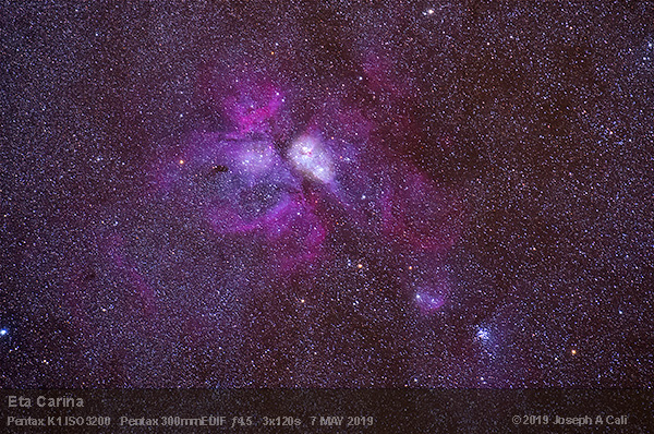 BYO snacks. ![]() ![]() ![]() ![]() Guidance will be given throughout the nights with night sky orientation (astronomy 101) including some Wiradjiri dreamtime astronomy. We'll assist with target identification, capture techniques, telescope or tracker control, and camera operation. The nightscape workshops are timed so that we'll shoot the rising Milky Way around Scorpius. Later, the full milkyway loop will be able to be captured as a panorama or circumpolar star trails. If we are really lucky, we might get an airglow display or a faint aurora invisible to the eye but that can be recorded photographically. Bright aurorae visible from this latitude to the eye are extremely rare. ![]() Some motorised tracking devices will be available for you to try out. We will demonstrate set up of such devices including all important polar alignment technique and discuss pro's and con's of various devices as well as sources of error not related to the polar alignment. You are welcome to bring your own tracker & learn how to set it up or take turns trying your camera on Joe's trackers. Objects such as Eta Carina and Rho Ophiuchi shown below are within your grasp with the use of the trackers. Naturally, the program will also include plenty of wide angle fixed tripod nightscape photography targets in addition to the tracking targets. ![]() ![]() Eta Carina ![]() After midnight the central Milky Way will reach peak altitude. If you have the energy, it remains dark enough to do photography until 5am. By 4am, the zodiacal light will be visible and able to be photographed. Some lenses/telescopes may be available to try. Subject to availability of camera mounting adapters for your camera brand. We recommend you turn in a bit earlier on the last night to ensure you get enough sleep for a safe fatigue free drive home on Monday. Requirements: DSLR, Lenses, Tripod, remote release (intervalometer recommended), small pair of binoculars useful but not essential, towel, and sleeping bag for bedding, spare batteries recommended and chargers, very warm clothes. Own transport to 34 South (160km/ 1 hr 45mins drive). We will try to facilitate carpooling arrangements between participants if requested. Meals, accommodation in the property's bedrooms, and astronomical activities are all co-located, once there, you don't need to travel unless you want to explore. Road access is good, all sealed except the last 120 metres of the road which is unsealed but well maintained and accessible with a small low ground clearance sedan. |